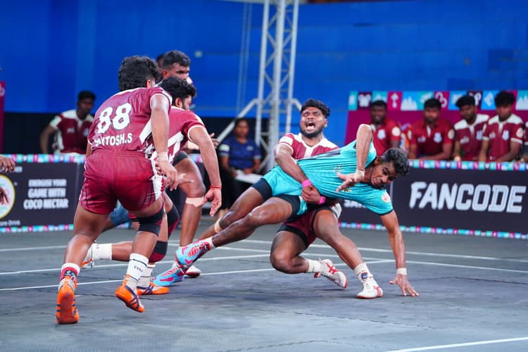 In the YKS TN Clubs 2024 tournament, representing Vels University is M Ajith Kumar, born on July 25, 2000, in Thanjavur, Tamil Nadu. Currently residing in Thanjavur, Ajith's father, Muruganandam, works as a farmer, while his mother, Renuka, is a homemaker. He has an elder sister named Satya, who does not play Kabaddi. Ajith embarked on his Kabaddi journey at the age of 13, specializing as a Left Corner Defender. Renowned for his skillful back hold technique, Ajith hones his abilities under the guidance of Coach Puvi at Chennai Vels University, with practice sessions held at SAI, Salem. He particularly admires Surendar Nada for his exceptional ankle hold prowess. Throughout his career, Ajith has participated in various prestigious tournaments, including the All India Inter-University in Mangalore, where he secured a silver medal in 2023. Additionally, he clinched a bronze medal at the Khelo India University Games in Uttar Pradesh the same year and participated in the games held in Assam. Ajith's participation in the YKS Winter Edition 2022 for Palani Tuskers further highlights his dedication to the sport. Beyond Kabaddi, Ajith also enjoys playing Kho Kho. Currently pursuing his Bachelor of Arts in Economics, Ajith has completed a one-year diploma in Yoga alongside his academic pursuits. His career aspiration is to secure a job in the Railways, driven by his passion for the sport and his desire for professional stability. Ajith's confidence in English communication adds to his overall persona, reflecting his determination and readiness to excel both on and off the Kabaddi mat.