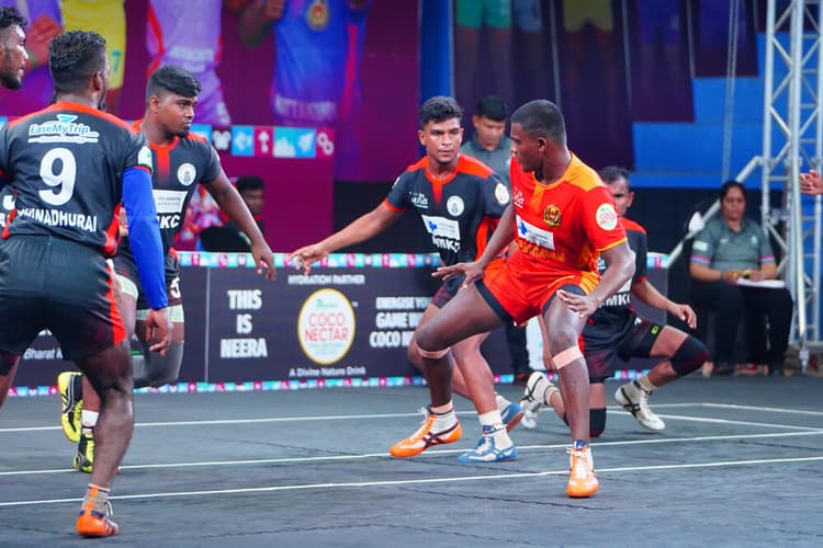 In the YKS TN Clubs 2024 tournament, representing Team Durai Singam, we have Subramanian. Born on May 24, 2002, in Rajapalayam, Virudhunagar, Tamil Nadu, he currently resides in Krishnapuram, Virudhunagar. His father, Samuthrakani, works as a butcher and also as a daily wage worker, while his mother, Poonkodi, is also engaged in daily wage work. Subramanian has a younger brother named Manikandan, who also plays kabaddi at Samy Academy. Subramanian began playing kabaddi at the age of 14 and primarily plays as a Right Raider. His favorite skill on the field is the Hand Touch. He is coached by his cousin brother, Vivek, and practices kabaddi in his village. His favorite kabaddi player is Naveen Kumar, whom he admires for his exceptional touch skills. Subramanian has represented his university in the South Zone Inter-University tournament in 2021. Participating in the Yuva Kabaddi Series is a notable highlight for him. Apart from kabaddi, Subramanian enjoys playing badminton. He is currently pursuing a degree in BA History, currently in his third year. His aspiration for the future is to secure a government job.